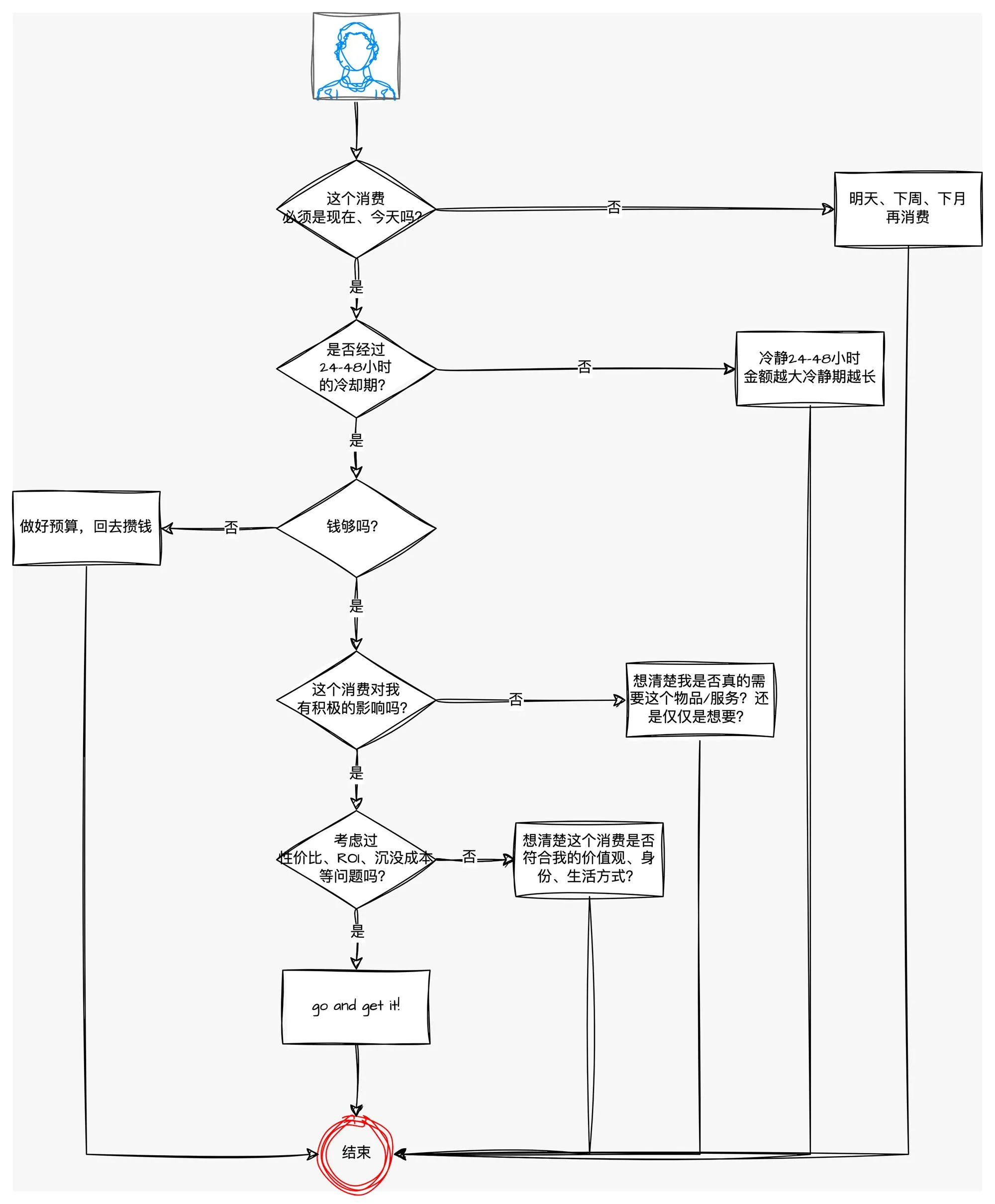 最后分享一个我自己正在尝试使用的简单消费决策逻辑: