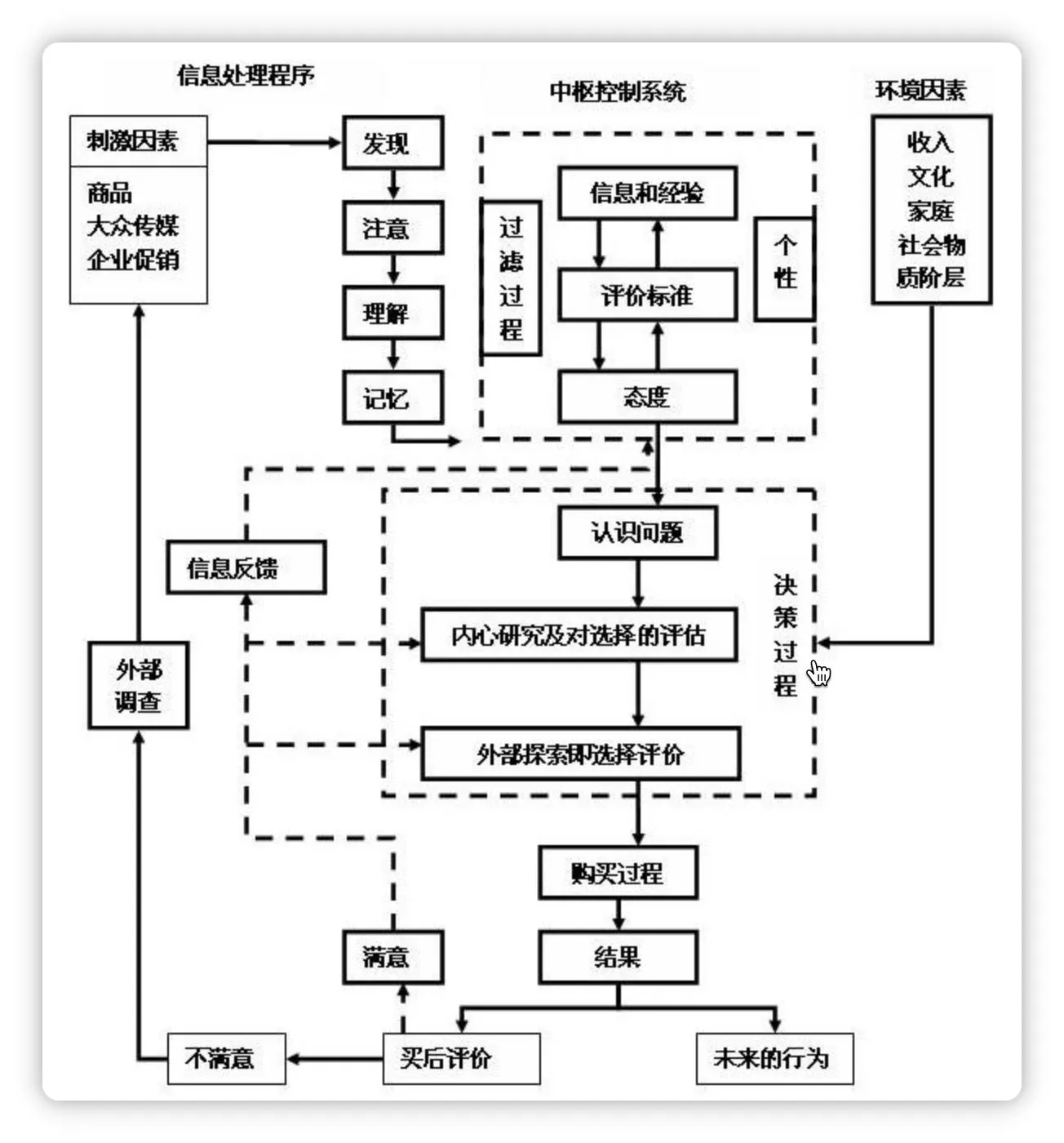 双十一了,好物清单、什么值得买之类的内容铺天盖地,到底我们在消费的时候受到哪些东西影响,我觉得需要研究一下消费决策模型。根据恩格尔(Engel)等提出的 EBK 模型可以看出消费时原来是这么样复杂,哪怕买瓶水、买个包子都无形中被这么多因素影响着。为了自己的钱包,我觉得很有必要建立属于自己的消费决策模型。