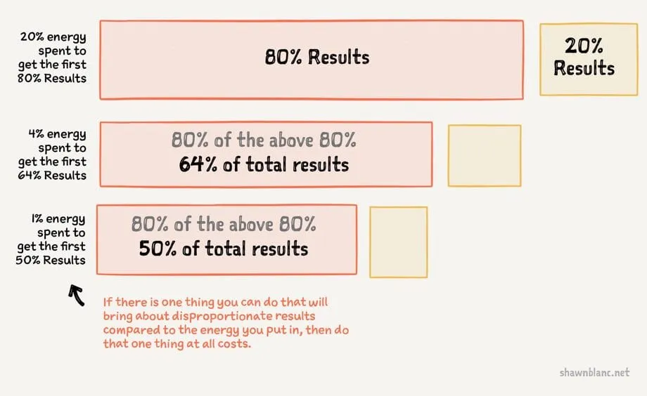 你肯定听说过“关键少数法则”。它就是所谓的 80/20 法则 ,该法则指出,大约 80%的结果来自于 20%的精力投入。